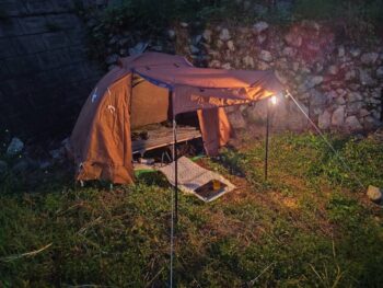 ご覧の皆様こんにちは! 今回はおすすめツーリングスポット番外編ということで、ツーリングキャンプの紹介をしたいと思います!と言いましても私は今回初めてツーリングキャンプをしたので、ただテント建てて寝ただけなのですが(笑) 今回一番実感したのは、道具の選定の重要さです!限られた積載のなかで何を持っていくか、ある意味ツーリングキャンプで一番面白いところなのではないかと思いました! 結論、難易度激高です!!!バイクの積載がある程度できないと、寝るための道具しか持っていくことができません。今後はバイクに積載できるようキャリアをつけたりいろいろと調べてから再チャレンジしたいと思います! ちなみに行った場所は熊がいないとされている広島県江田島市なのですが、イノシシの量がすごいと言われています。夜中少しの物音で起きてしまい、ほぼ寝ることができませんでした。 唯一堪能できたのは星空が綺麗だった、というくらいですかね(笑)次はきちんと事前準備して行きたいと思います!! 投稿者++ D・S ++